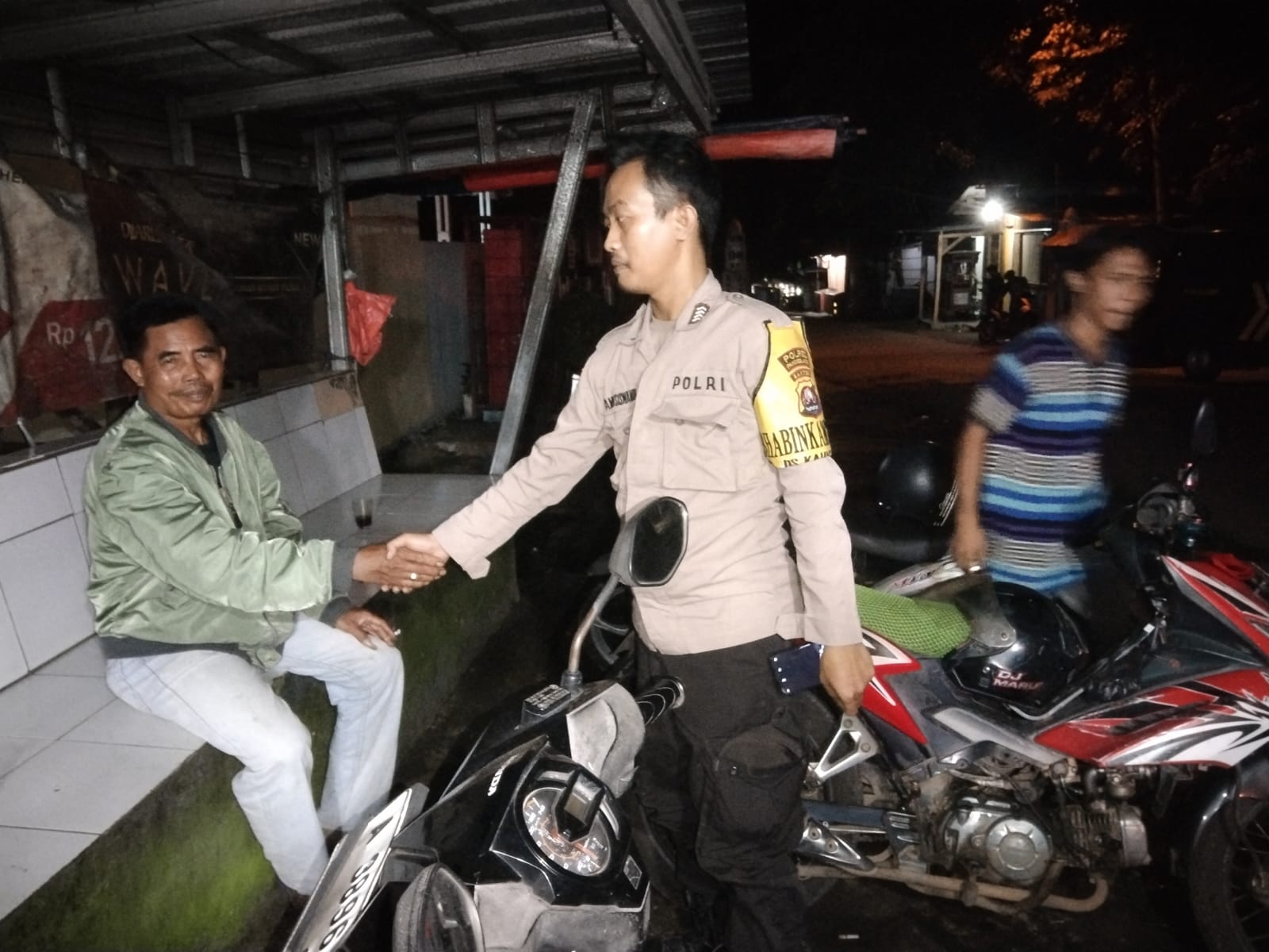 Bhabinkamtibmas Polsek Cadasari Lakukan Kunjungan ke Pangkalan Ojek Malam Hari