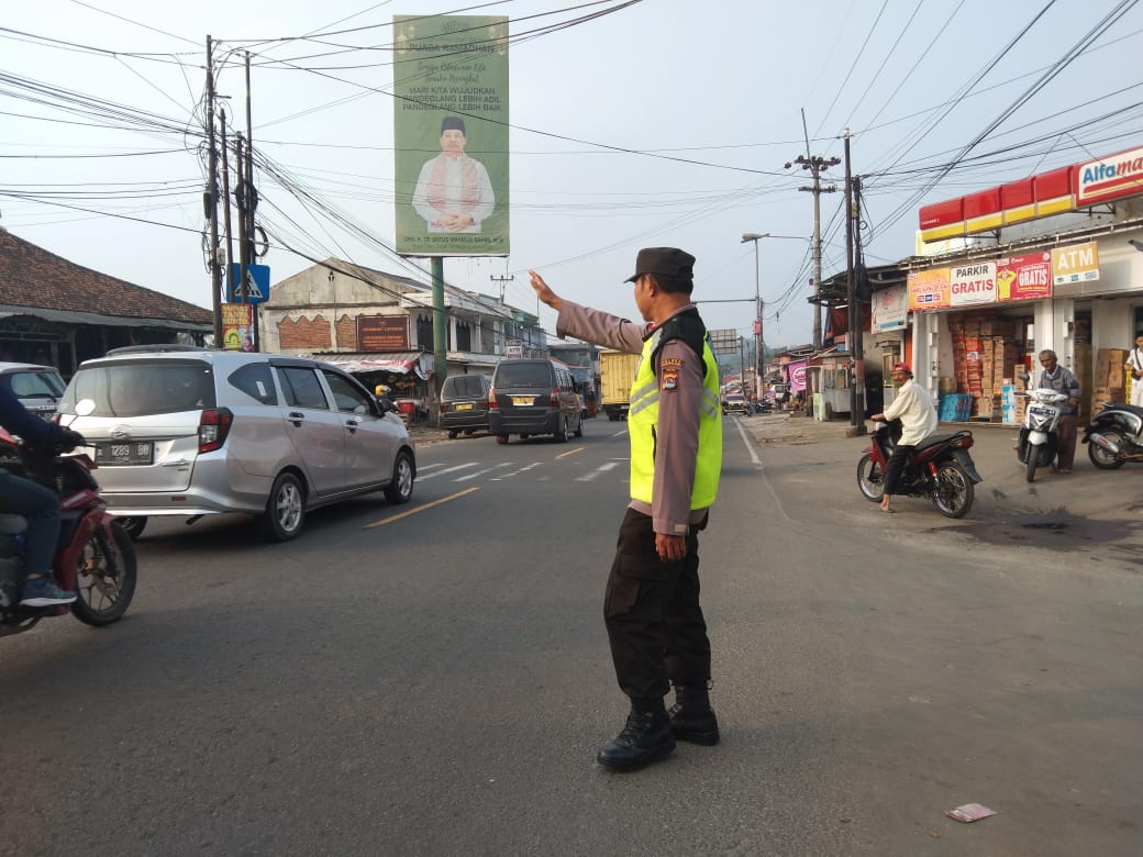 Pandeglang – Polsek Cadasari melakukan pengaturan lalu lintas di depan Pasar Cadasari dengan tujuan memastikan kelancaran dan keselamatan pengguna jalan. Kegiatan ini dilakukan pada Kamis pagi, 16 Mei 2024, dan berlangsung dengan penuh semangat oleh anggota Polsek Cadasari.