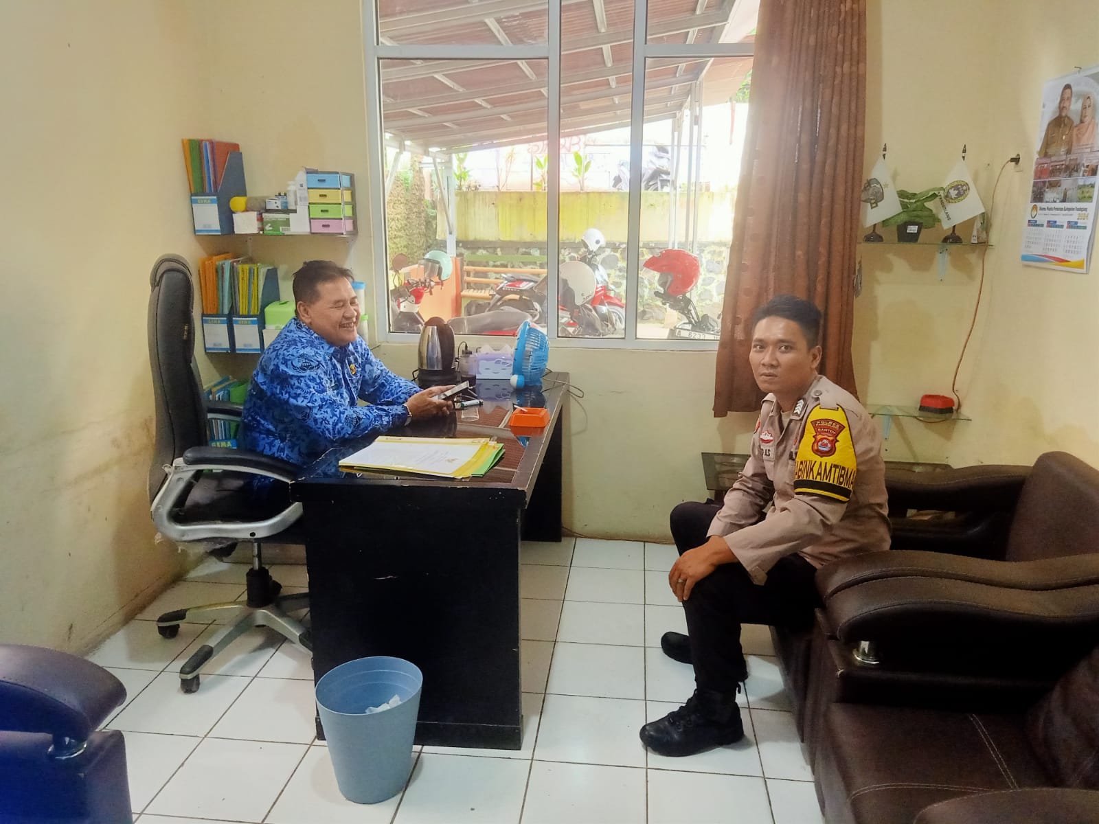 Pandeglang – Pada hari Senin, 20 Mei 2024, Bhabinkamtibmas Polsek Cadasari Polres Pandeglang Kelurahan Kadu Merak, Bripka Asep Asvina, melakukan kunjungan kerja atau sambang ke Kantor Kelurahan Kadu Merak. Kunjungan ini merupakan bagian dari upaya berkelanjutan untuk mempererat hubungan antara aparat kepolisian dengan pemerintah kelurahan serta masyarakat setempat.