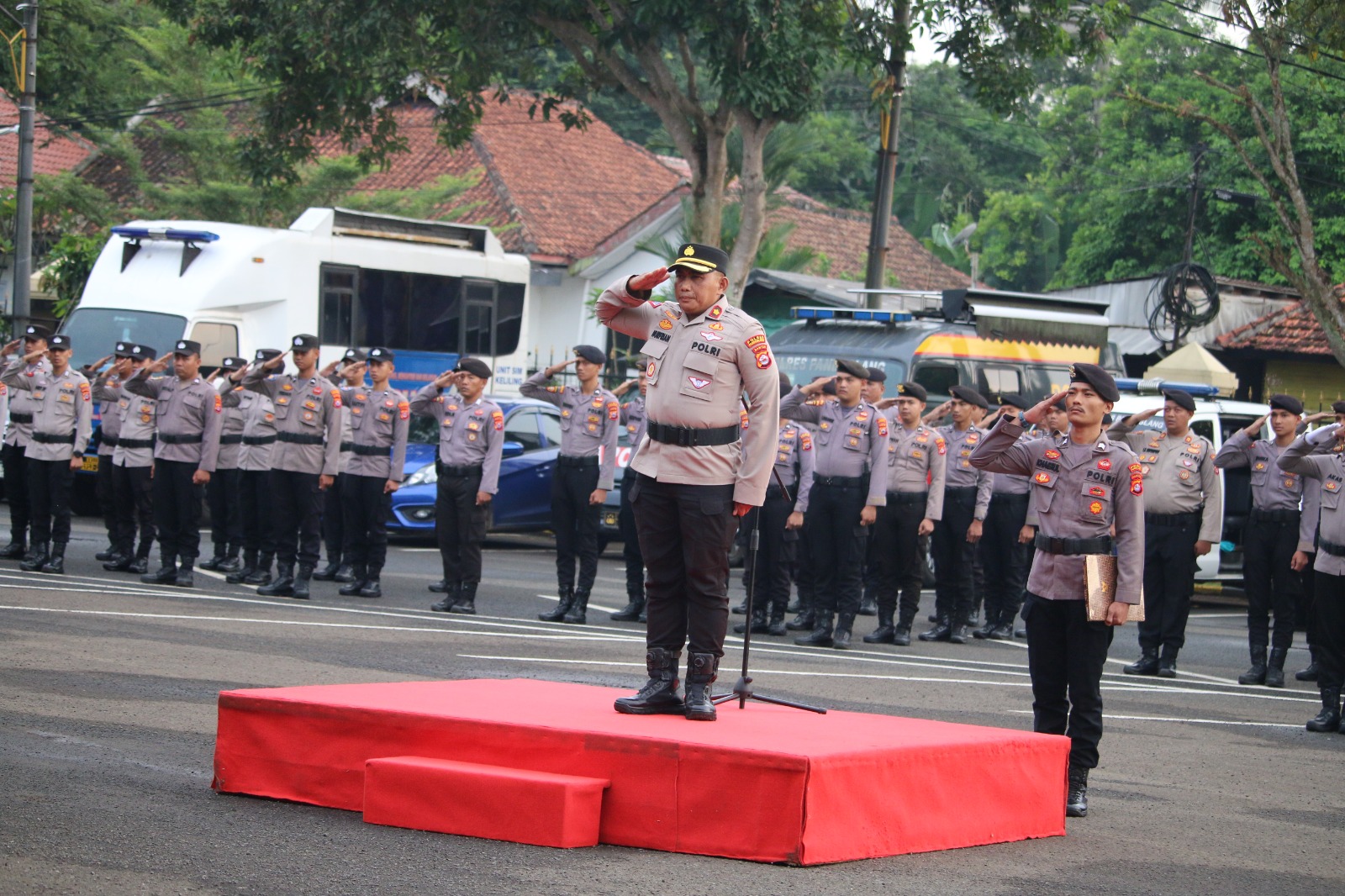 Pandeglang – Polres Pandeglang menggelar upacara bendera untuk memperingati Hari Kesadaran Nasional (HKN) 2024 yang berlangsung di halaman Mapolres Pandeglang pada Senin (20/05/2024). Upacara ini dihadiri oleh seluruh pejabat utama (PJU), personel, dan Aparatur Sipil Negara (ASN) Polres Pandeglang.