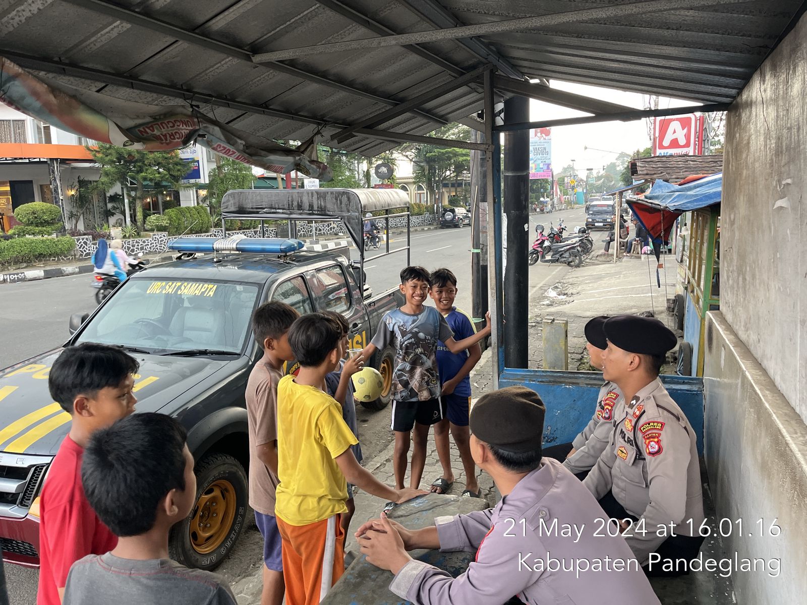 Selama patroli, terlihat unit patroli Sat Samapta di sambangi oleh beberapa anak-anak. Personil Sat Samapta dengan sigap memberikan edukasi dan pesan Kamtibmas kepada anak-anak tersebut. Mereka mengingatkan pentingnya mengutamakan keselamatan di mana pun berada dan menekankan agar anak-anak tidak bermain di dekat jalan raya karena berbahaya.