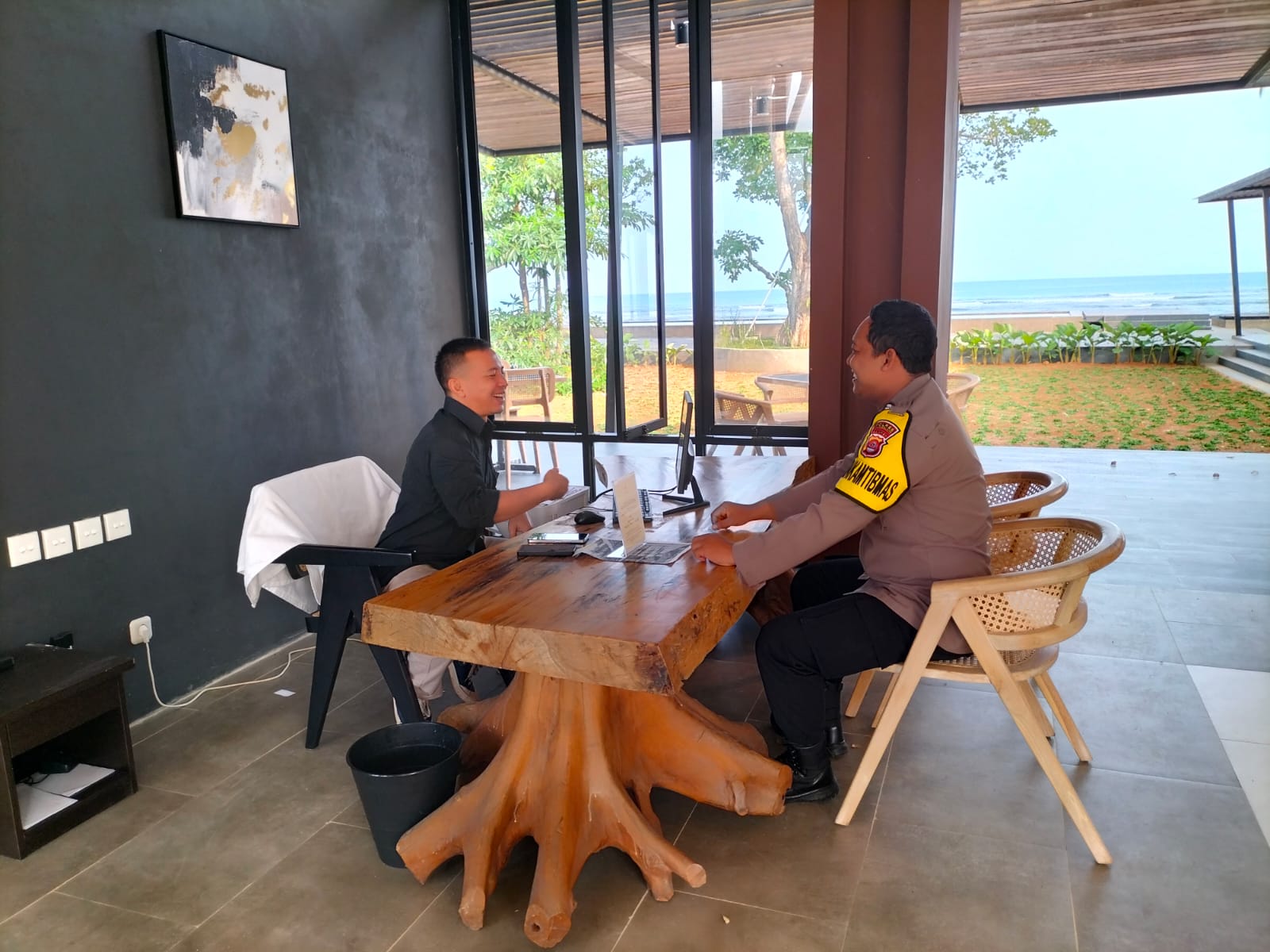 Dalam kunjungannya, Bripka Bambang berdialog dengan manajemen hotel serta petugas keamanan. Dialog tersebut bertujuan untuk membangun komunikasi yang efektif dan memperkuat koordinasi dalam menghadapi berbagai situasi yang bisa mengganggu ketertiban dan keamanan di lingkungan hotel.