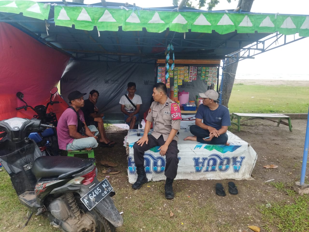 Dalam kesempatan tersebut, AIPDA LILI RIYANTO memberikan arahan dan himbauan kepada masyarakat binaan untuk menjaga barang bawaan dan tetap waspada terhadap potensi bahaya saat berada di pantai.