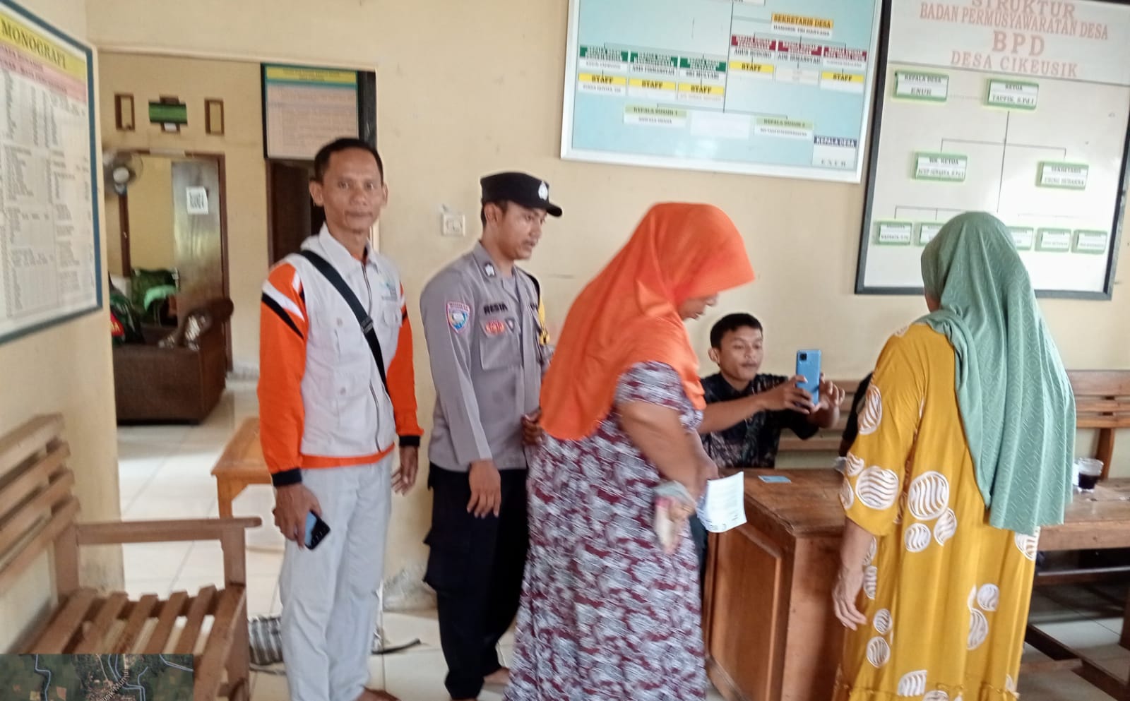 Pandeglang – Bhabinkamtibmas Polsek Cikeusik, Polres Pandeglang, Briptu Resta Respiana, gencar melakukan monitoring penyaluran Bantuan Langsung Tunai (BLT) Program Keluarga Harapan (PKH) di Kantor Desa Cikeusik, Kabupaten Pandeglang, pada hari Sabtu (25 Mei 2024).