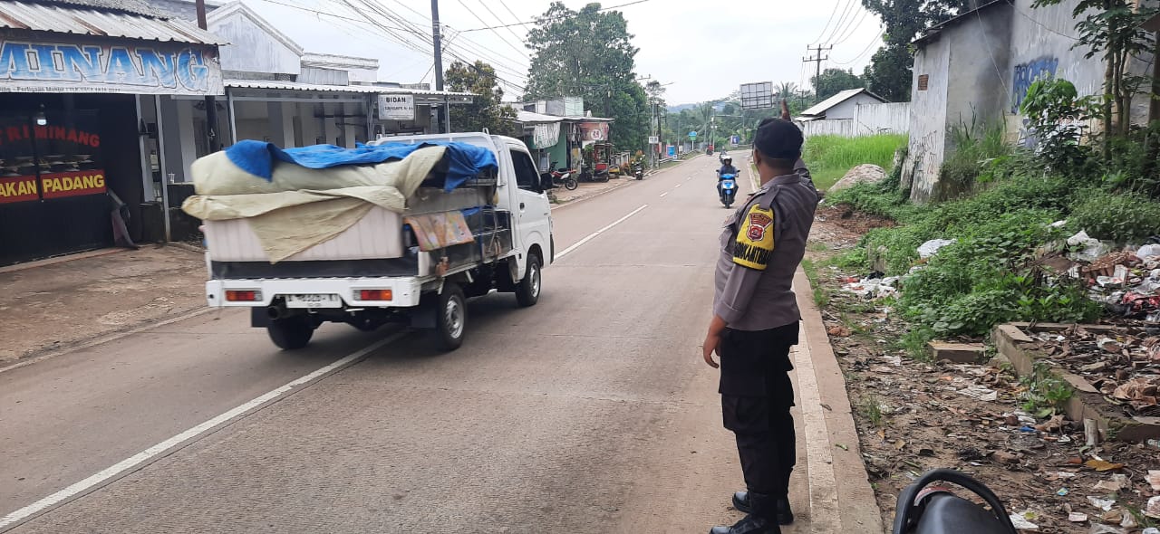 Polsek Picung Gelar Strong Point dan Pengaturan Lalu Lintas untuk Kelancaran Arus di Jalan Raya Saketi – Malingping