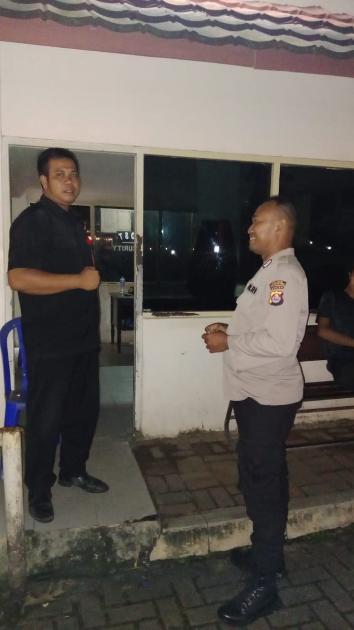 Anggota Polsek Carita Melakukan Patroli Malam ke Hotel dan Bertemu Security untuk Memberikan Himbauan