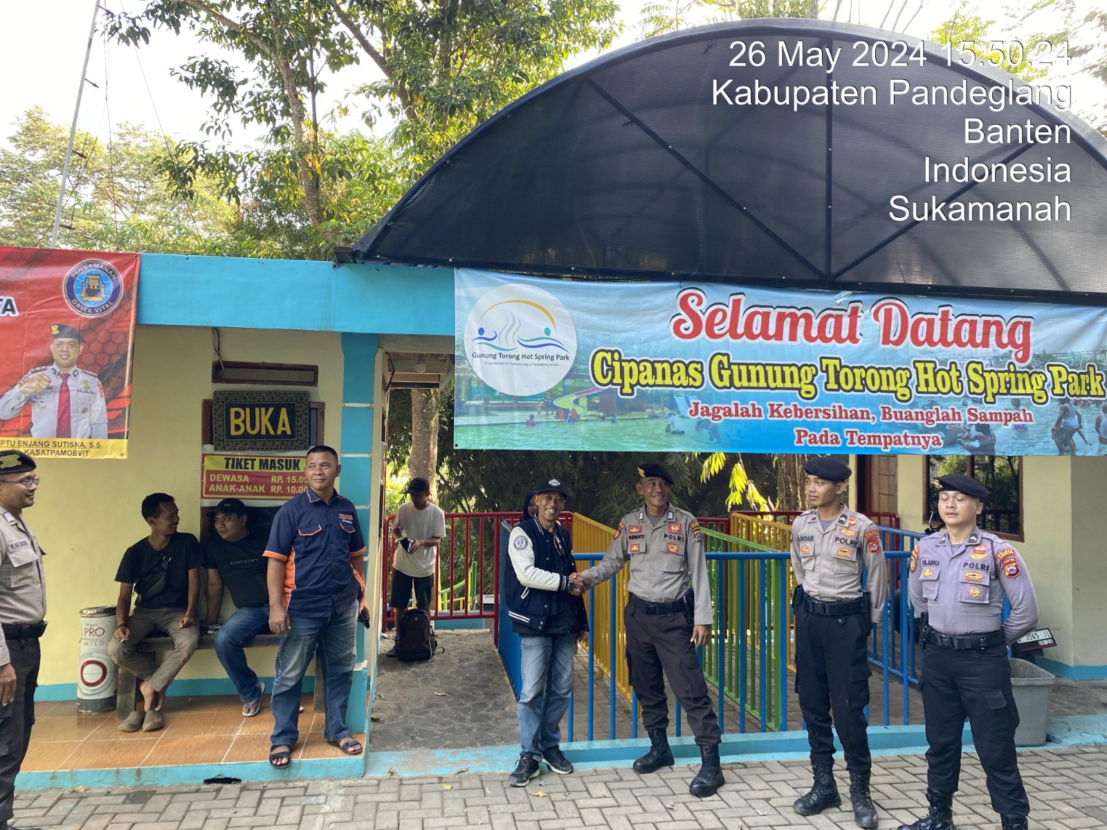 Pandeglang – Satuan Samapta Polres Pandeglang melaksanakan patroli akhir pekan dengan menyambangi salah satu objek wisata unggulan di Kabupaten Pandeglang, yakni Pemandian Air Panas Cipanas, pada Minggu (26/05/2024). Kegiatan ini dilakukan sebagai upaya untuk meningkatkan keamanan dan kenyamanan bagi para pengunjung yang memanfaatkan liburan akhir pekan di lokasi tersebut.