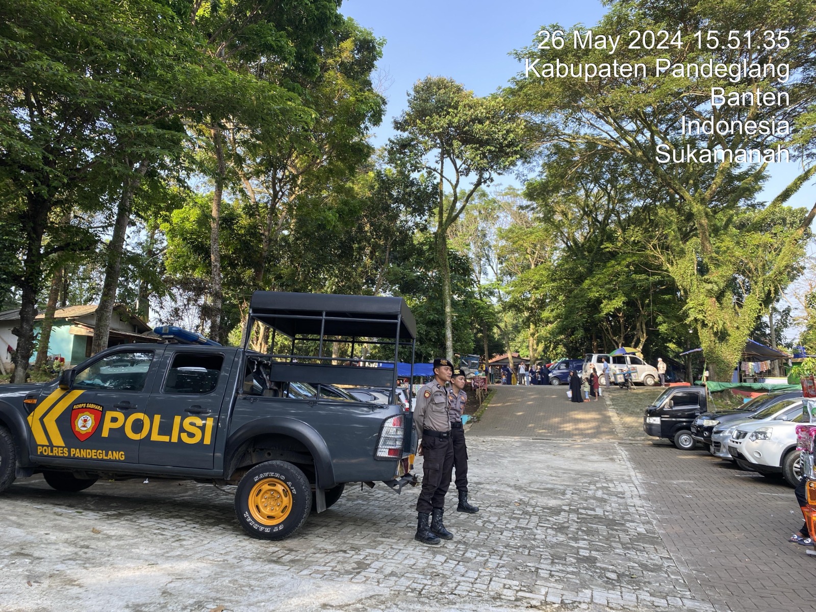 Sat Samapta Polres Pandeglang Monitoring Tempat Parkir Obyek Wisata Pamandian Cipanas