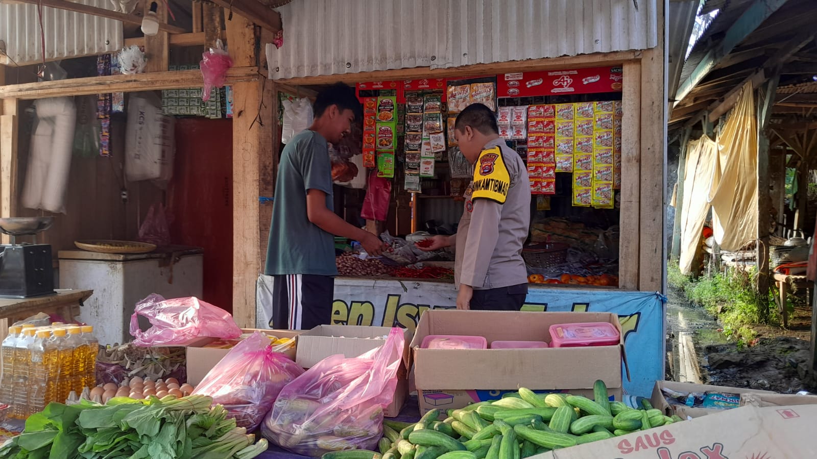Pandeglang – Polsek Pagelaran Polres Pandeglang Polda Banten Kegiatan Bertempat di Pasar Pagelaran Dalam rangka menjaga stabilitas harga bahan pokok di wilayah Pedagang desa motor Satuan Bhabinkamtibmas melakukan kegiatan pengecekan harga bahan pokok di desa motor pada hari Rabu (29/05/2024).