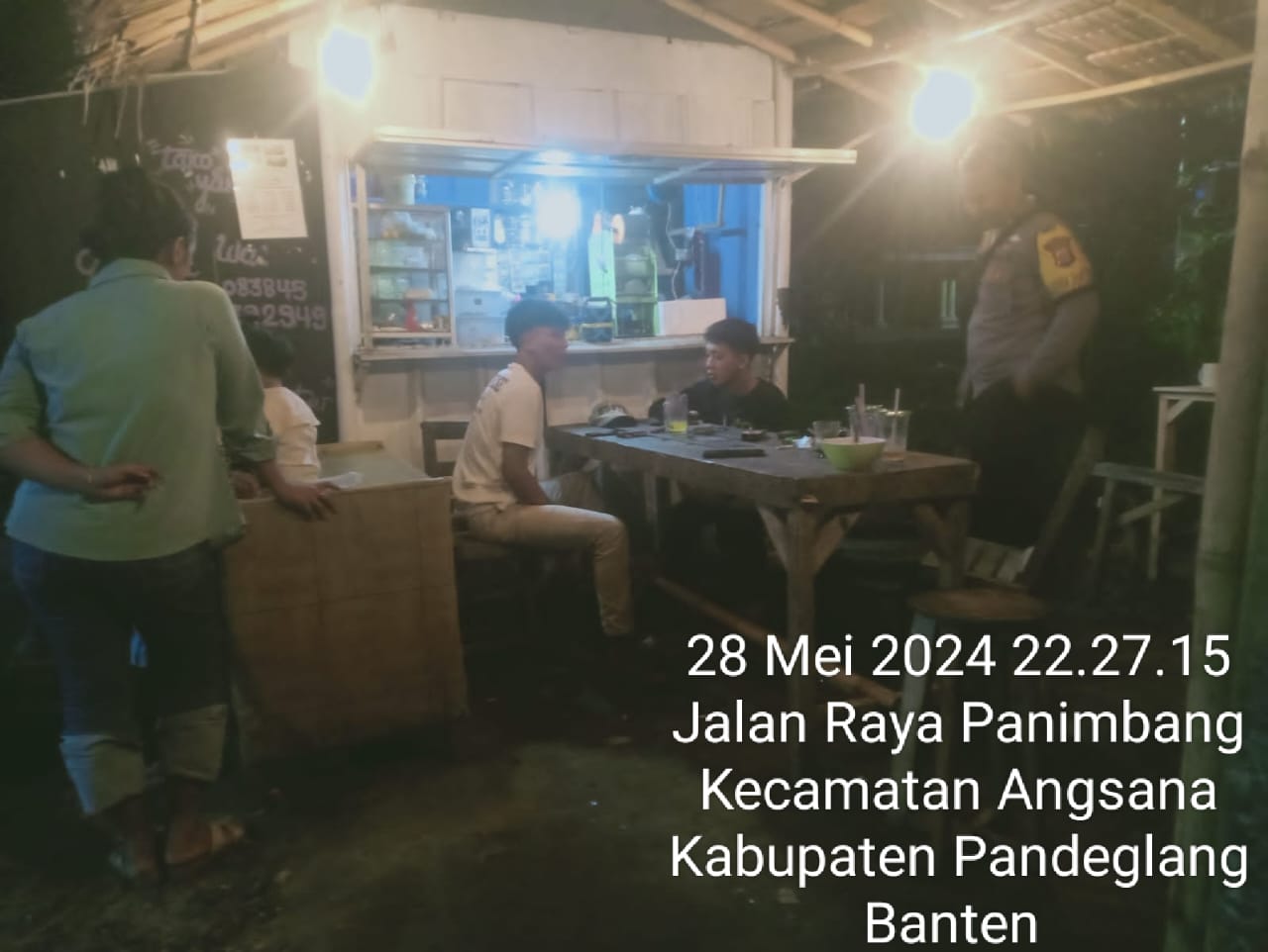 Pandeglang, 29 Mei 2024 – Bhabinkamtibmas Polsek Angsana Polres Pandeglang, Brigadir Jumhani, melakukan kunjungan ke Desa Cikayas dan bertemu dengan para pemuda di sebuah warung kopi setempat pada hari Selasa. Dalam pertemuan tersebut, Brigadir Jumhani menyampaikan pesan penting mengenai bahaya tawuran dan dampak negatifnya terhadap masyarakat.