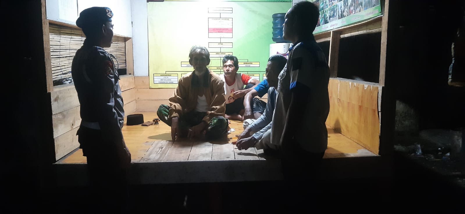 Salah satu untuk mencegah kriminal petugas ronda malam harus patroli berkeliling kampungnya dengan membawa alat senter penerang apa bila masyarakat diwilayah menemukan perjudian, minuman keras serta kasus pencurian segera melaporkan ke kami atau ke polsek langsung.