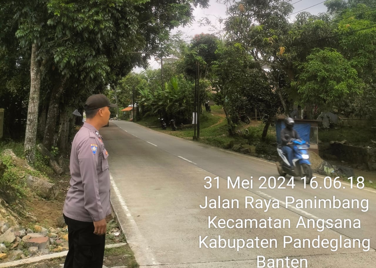 Anggota Piket Polsek Angsana Polres Pandeglang Laksanakan Gatur Lalin Pagi