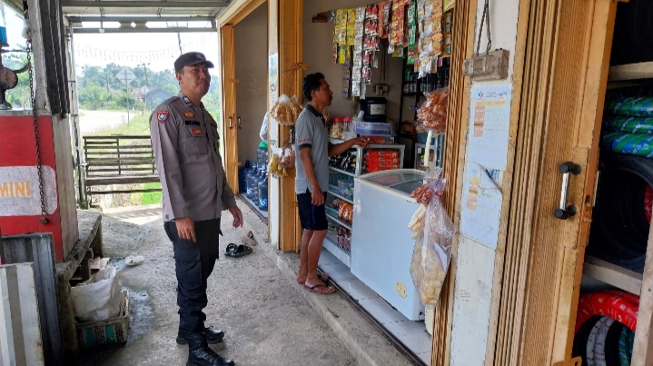 Bhabinkamtibmas Polsek Cikeusik Sambangi Pedagang Sembako di Desa Curugciung