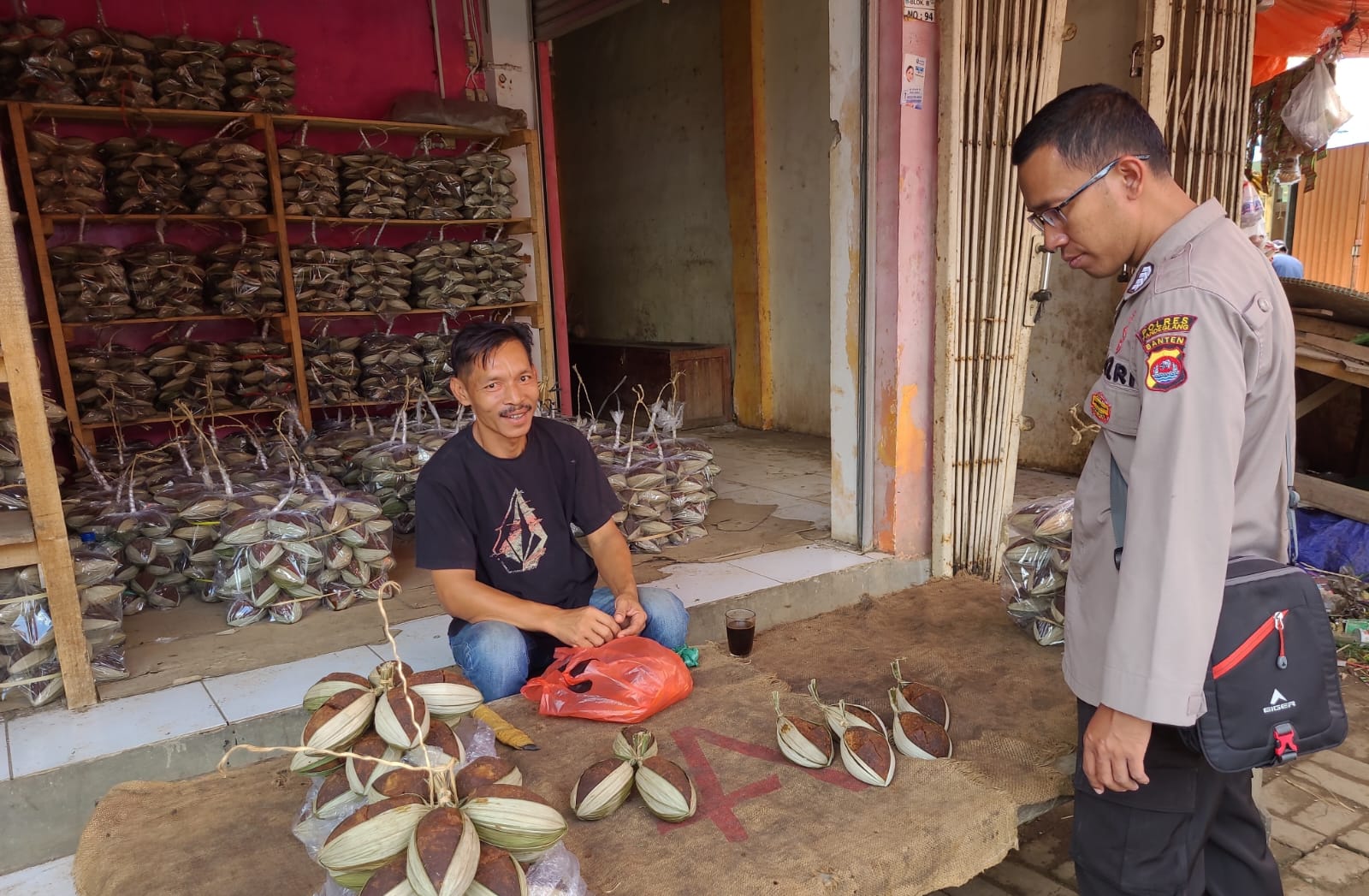 Pandeglang – Polsek Menes Polres Pandeglang yang dipimpin oleh Bripka Sukarno, S.AP. hari ini melaksanakan kegiatan pengecekan harga bahan pokok dan memberikan himbauan kepada para penjual gula aren di Pasar Menes. Kegiatan ini dilakukan dalam rangka menjaga stabilitas harga bahan pokok dan memastikan kualitas gula aren yang dijual kepada masyarakat, Senin 3 Juni 2024.