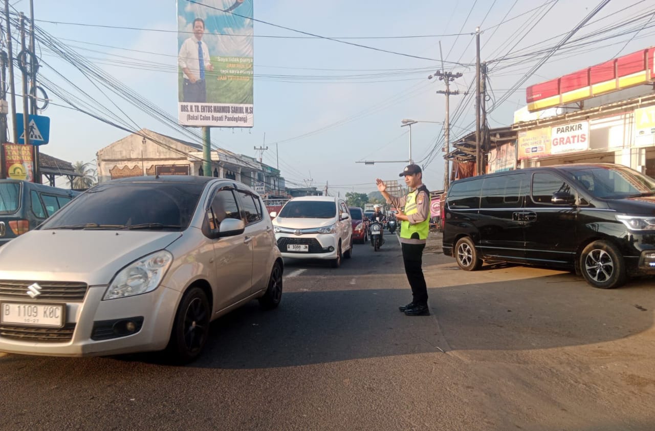 Selain mengatur lalu lintas, anggota Polsek Cadasari juga memberikan imbauan kepada para pengendara untuk mematuhi aturan lalu lintas dan selalu waspada saat berkendara.