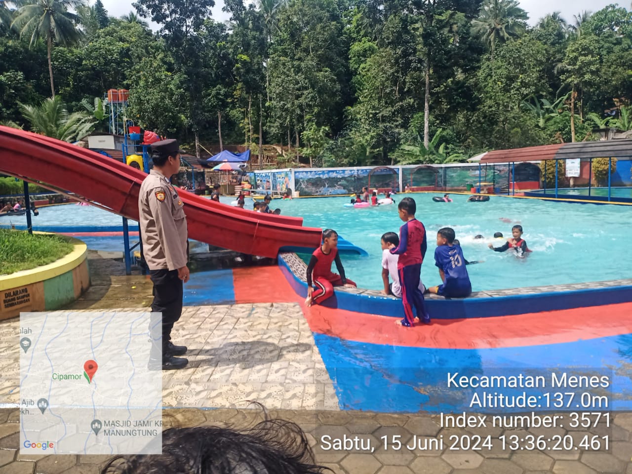 Polsek Menes Jaga Keamanan Pengunjung Kolam Renang di Liburan Akhir Pekan