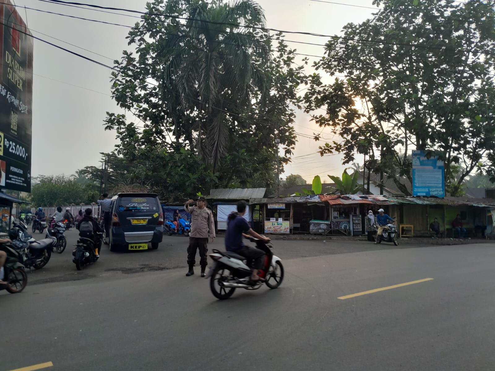 Pandeglang – Guna mengantisipasi kemacetan dan kecelakaan lalu lintas, Polsek Menes, Polres Pandeglang, Polda Banten, melaksanakan kegiatan pengaturan arus lalu lintas di Pertigaan Cimanying, Kecamatan Menes, pada hari Sabtu, 15 Juni 2024. Kegiatan ini dipimpin oleh Aipda Cep Miftah Panit Samapta Polsek Menes.