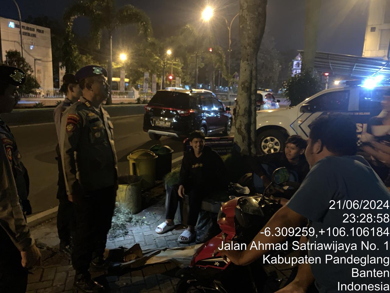 Pandeglang – Dalam upaya mencegah aksi kriminal dan kenakalan remaja di wilayah hukum Polres Pandeglang, Satuan Samapta Polres Pandeglang menggelar patroli malam dialogis pada Jumat malam, 21 Juni 2024. Patroli ini bertujuan untuk menjaga ketertiban dan keamanan masyarakat serta memberikan himbauan kepada remaja agar tidak melakukan hal-hal negatif seperti mabuk dan tawuran.