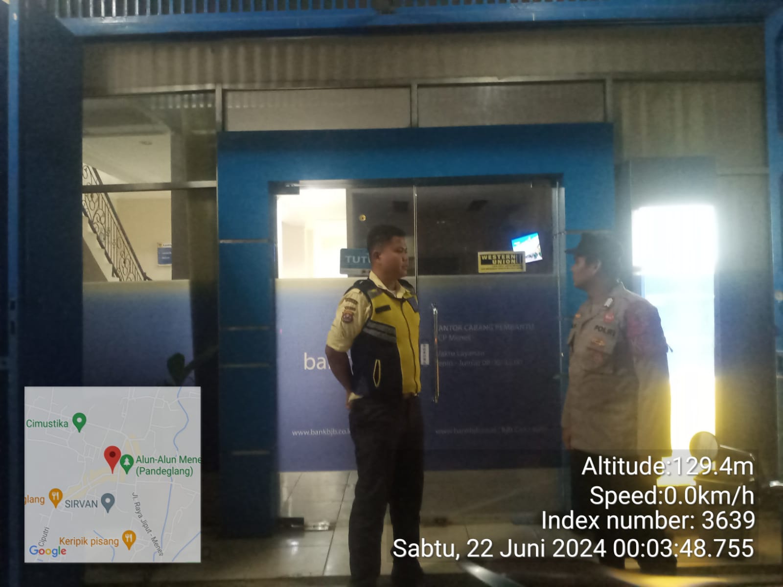 Pandeglang – Antisipasi pelaku kriminal, Petugas patroli Polsek Menes Polres Pandeglang melaksanakan patroli dengan sasaran perbankan dan mesin ATM guna meniadakan terjadinya kejahatan konvensional di area perbankan. (21/06/2024). Malam.
