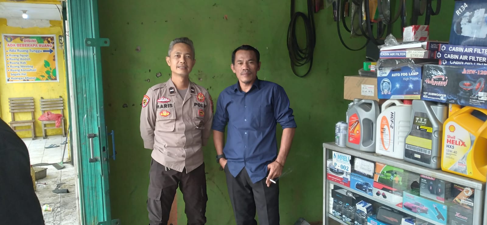 Pada kesempatan tersebut, Aipda Ibnu Haris berbincang dengan pemilik bengkel tentang berbagai isu, termasuk keamanan lingkungan dan upaya pencegahan tindak kriminalitas.
