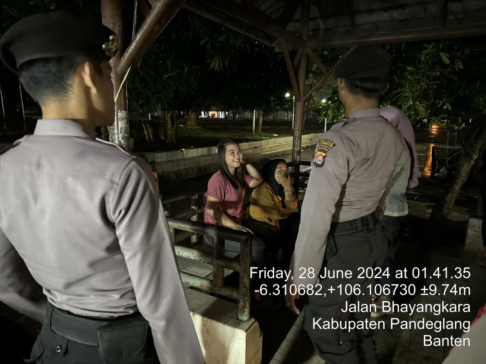 Pandeglang – Personil Sat Samapta Polres Pandeglang melaksanakan patroli malam dan menyambangi sekelompok remaja yang sedang nongkrong di Alun-Alun Pandeglang pada Kamis malam, 27 Juni 2024. Kegiatan ini dilakukan sebagai bagian dari upaya untuk menjaga keamanan dan ketertiban masyarakat (kamtibmas) serta memberikan edukasi kepada para remaja.