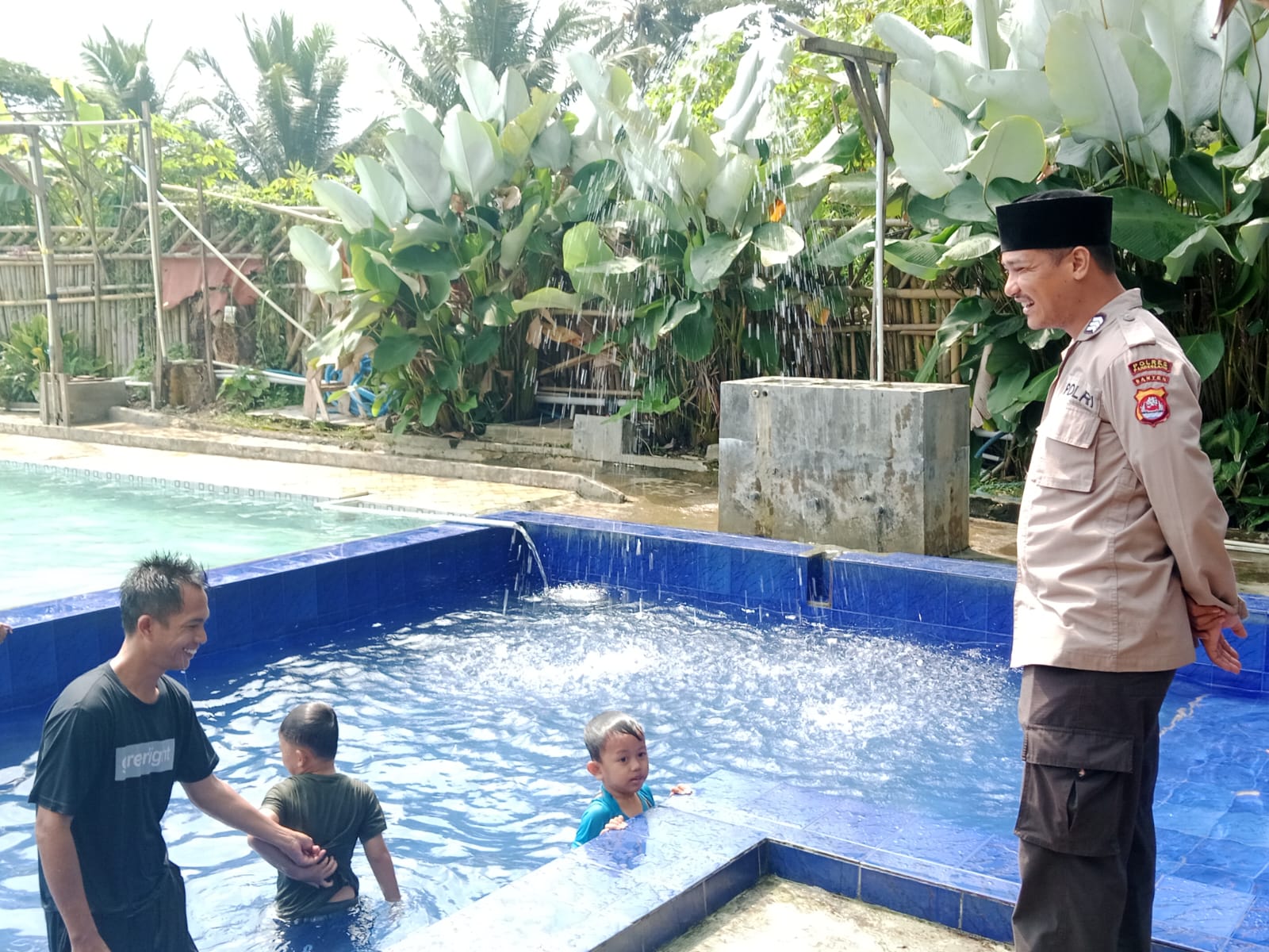 Cikedal – Brigadir Riko F, petugas piket jaga Polsek Cikedal, Polres Pandeglang, aktif melakukan patroli dan PAM objek wisata kolam renang guna menjaga kenyamanan dan kenyamanan masyarakat selama dalam berwisata atau berlibur di masa liburan sekolah saat ini.