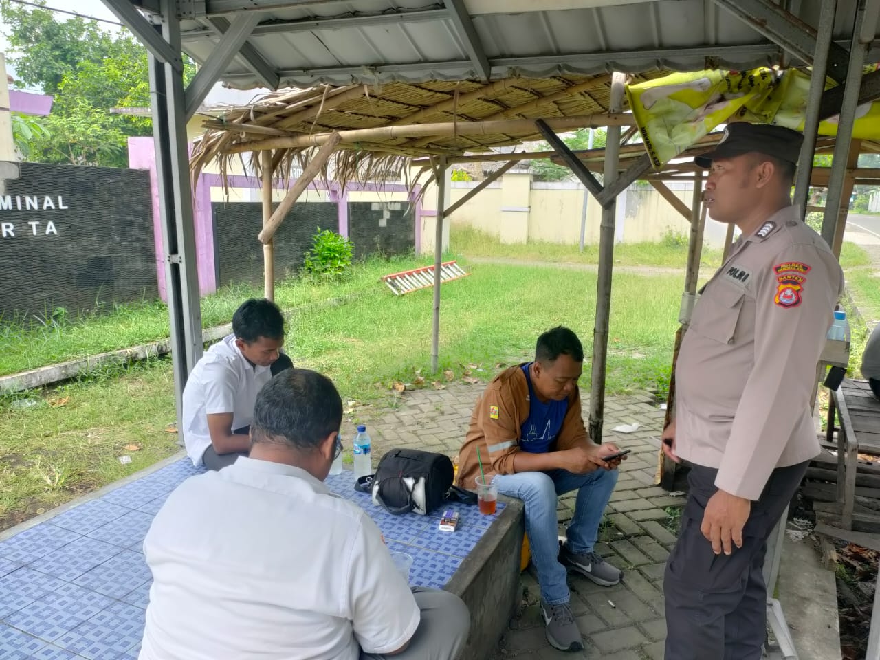 Bripka Eko dari Polsek Carita Menghimbau kepada Masyarakat yang Sedang Duduk Santai
