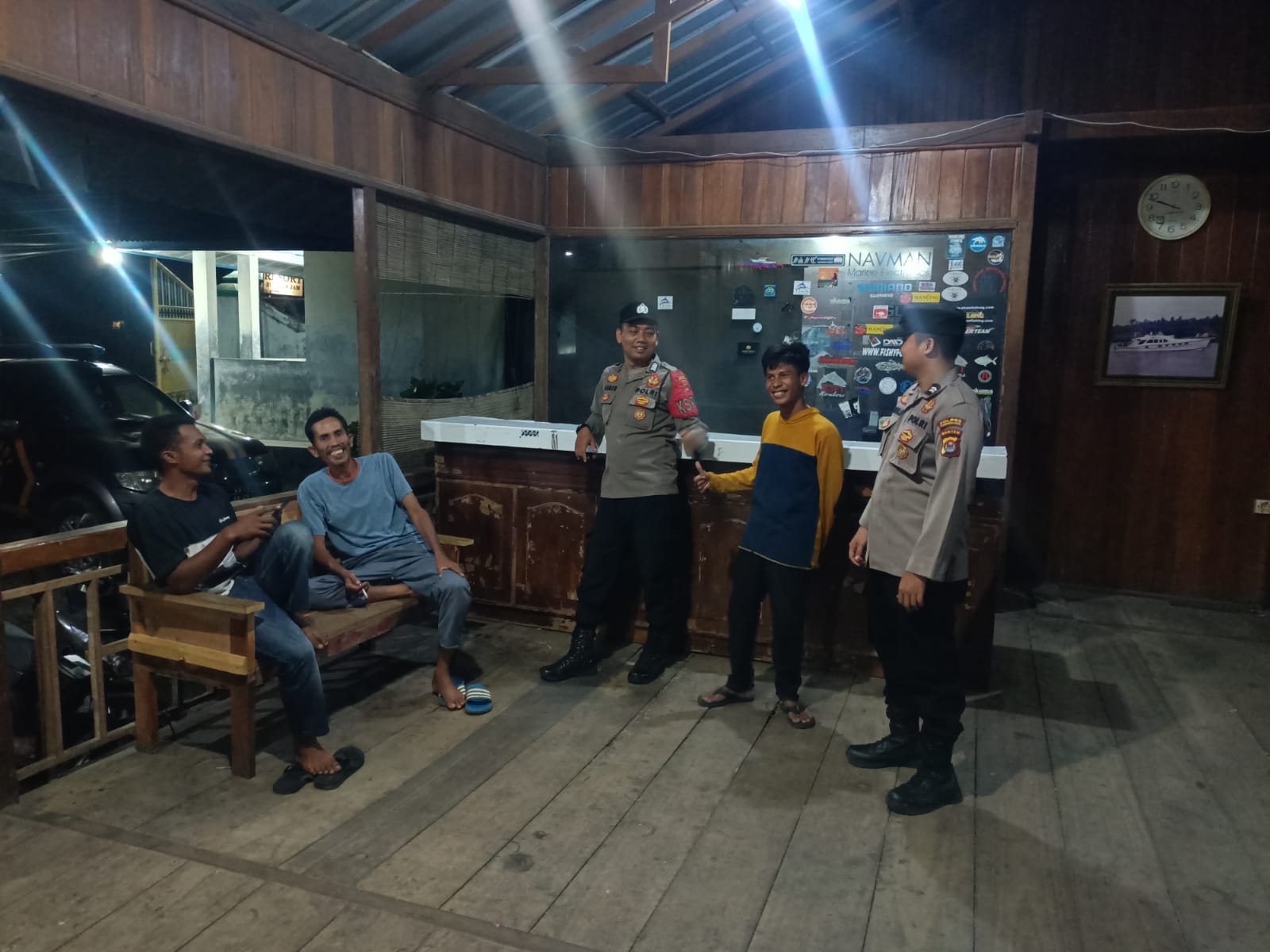 Bripka Asep dan Briptu Abnu menyambangi beberapa tempat keramaian, seperti warung kopi, minimarket, dan pos ronda. Mereka berdialog dengan warga yang ditemui, menanyakan tentang situasi kamtibmas di lingkungan mereka, dan memberikan imbauan agar selalu waspada terhadap aksi kriminalitas.