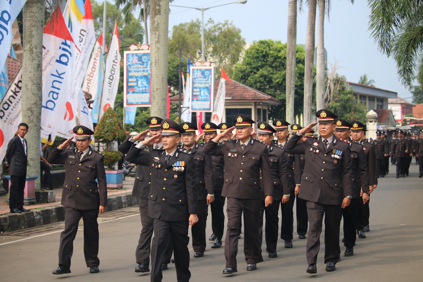 Kapolres Pandeglang, AKBP Oki Bagus Setiaji, menyampaikan apresiasi dan rasa bangganya terhadap seluruh personil yang telah menunjukkan semangat dan dedikasi tinggi dalam pelaksanaan upacara dan defile.
