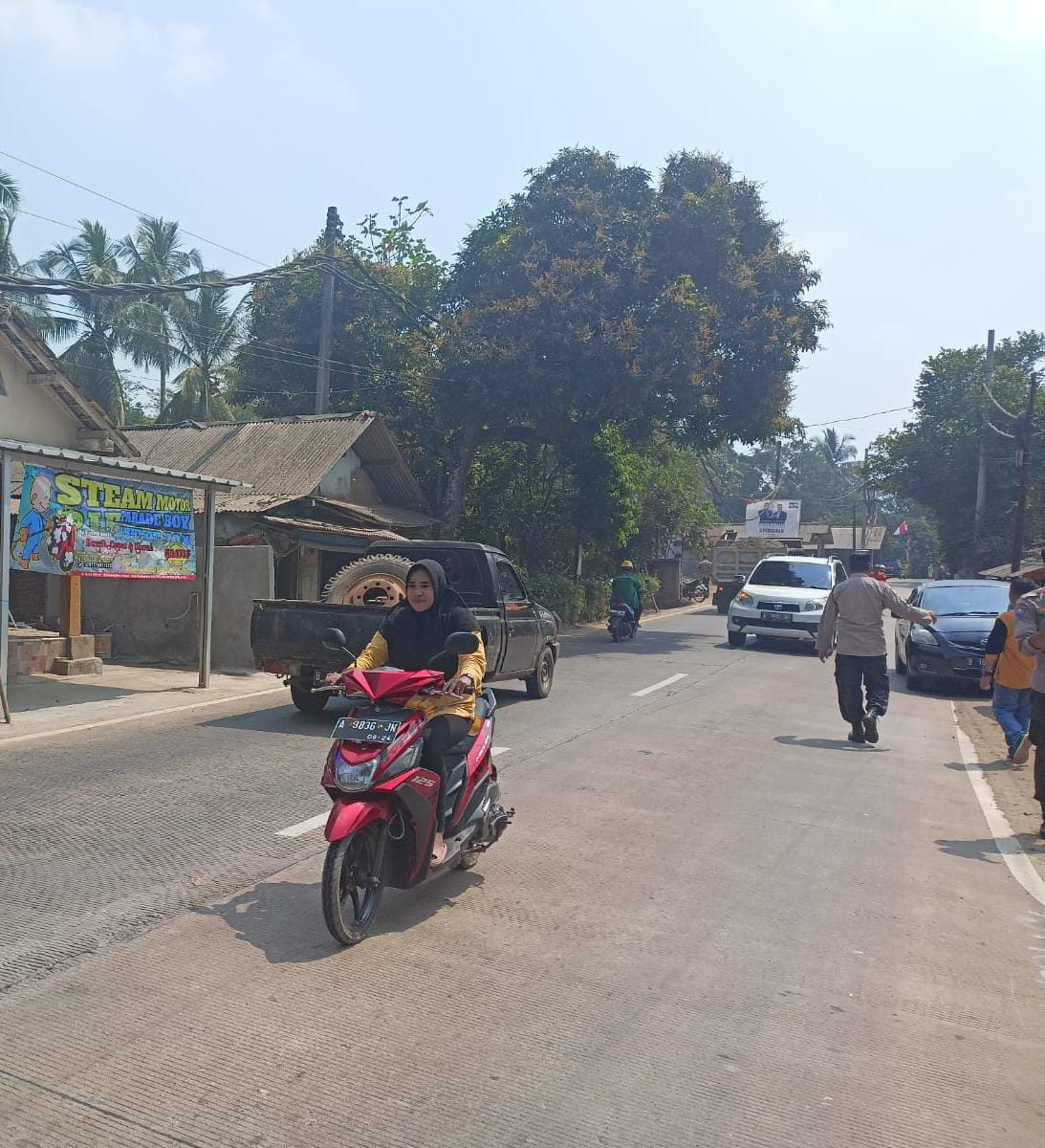 Personil Polsek Bojong Polres Pandeglang Gelar Pengaturan Lalu Lintas di Jalan Raya Saketi – Malingping