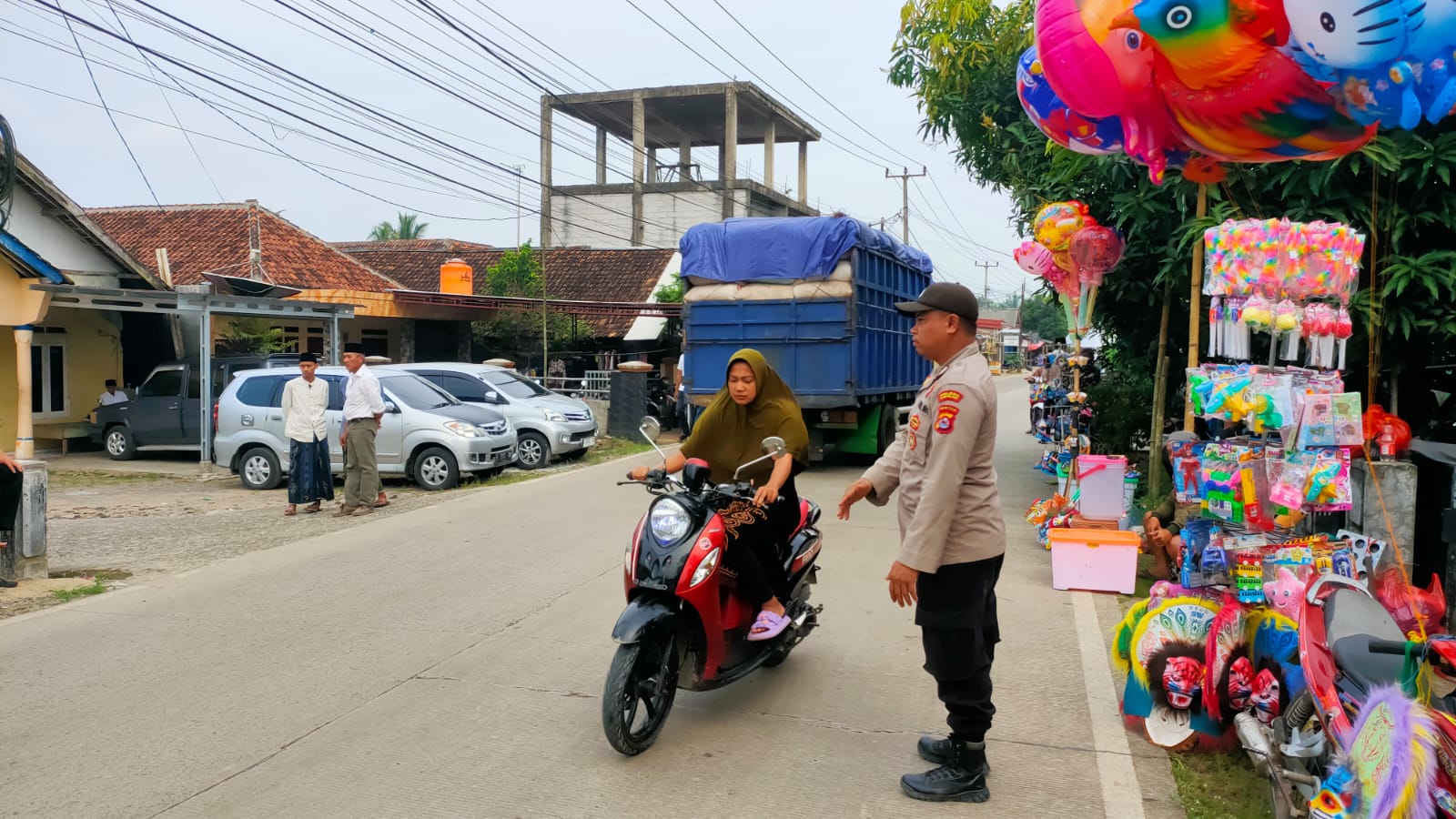 Selain mengatur arus kendaraan, Personil Polsek Munjul juga membantu menyeberangkan pejalan kaki dan memberikan imbauan kepada pengguna jalan agar selalu tertib dan mematuhi peraturan lalu lintas.