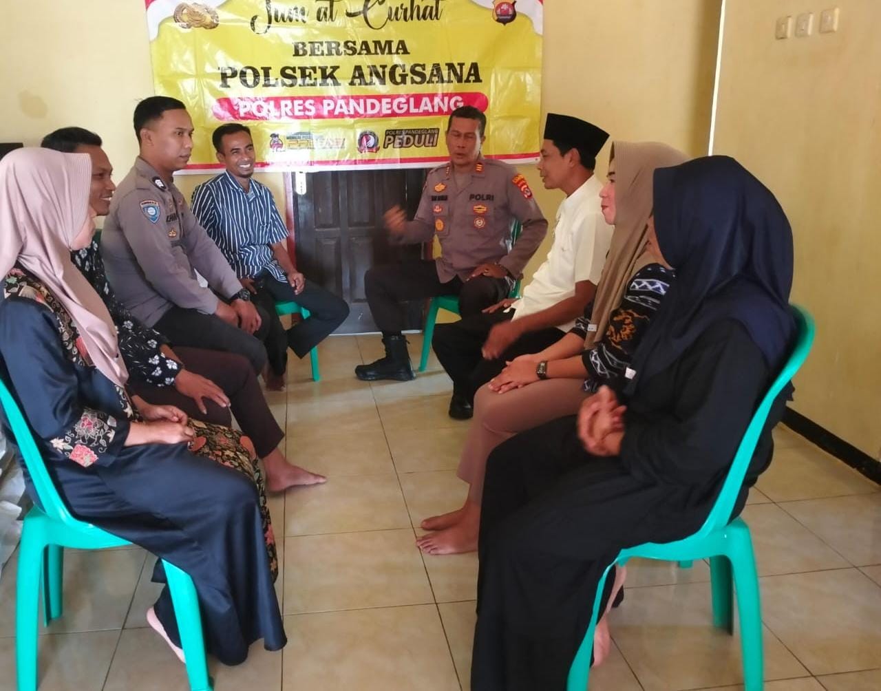 Pandeglang, 05 Juli 2024 – Brigadir Ruston, Bhabinkamtibmas Polsek Angsana Polres Pandeglang, melaksanakan kegiatan Jum’at Curhat di Desa Sumurlaban. Kegiatan ini bertujuan untuk mempererat hubungan antara polisi dan masyarakat, serta mendengarkan secara langsung keluhan dan aspirasi warga terkait situasi keamanan dan ketertiban di lingkungan mereka. Brigadir Ruston menyampaikan pentingnya kerjasama antara polisi dan masyarakat dalam menjaga keamanan desa.