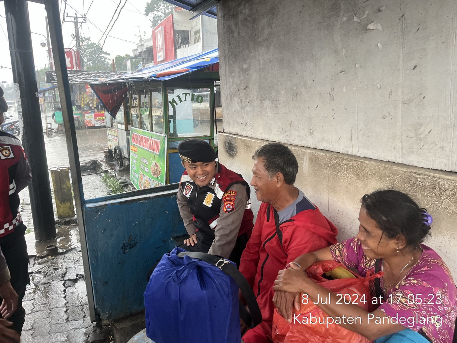 Pandeglang – Pada Senin, 8 Juli 2024, personil Sat Samapta Polres Pandeglang melaksanakan patroli siang hari di wilayah hukum Polres Pandeglang. Dalam kegiatan tersebut, personil menyambangi para penumpang angkutan umum yang sedang berteduh di beberapa titik, termasuk di terminal dan halte.
