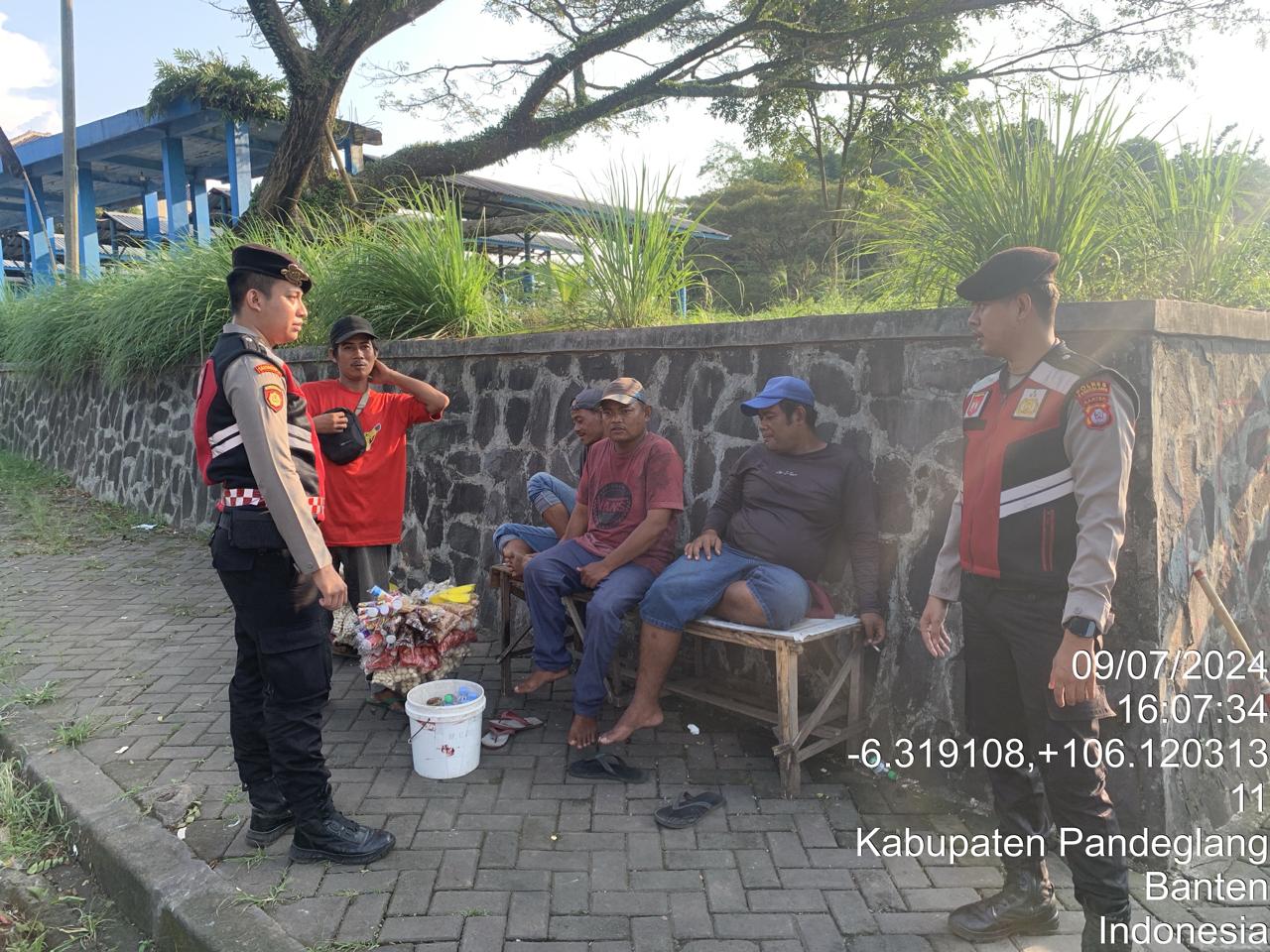 Pandeglang, Selasa (9/7/2024) – Personil Sat Samapta Polres Pandeglang melaksanakan kegiatan sambang dan memberikan himbauan kamtibmas (keamanan dan ketertiban masyarakat) kepada pedagang asongan di Terminal Kadubanen. Kegiatan ini dipimpin langsung oleh Kasat Samapta Polres Pandeglang, AKP Lutfi Tamimi Napitupulu.