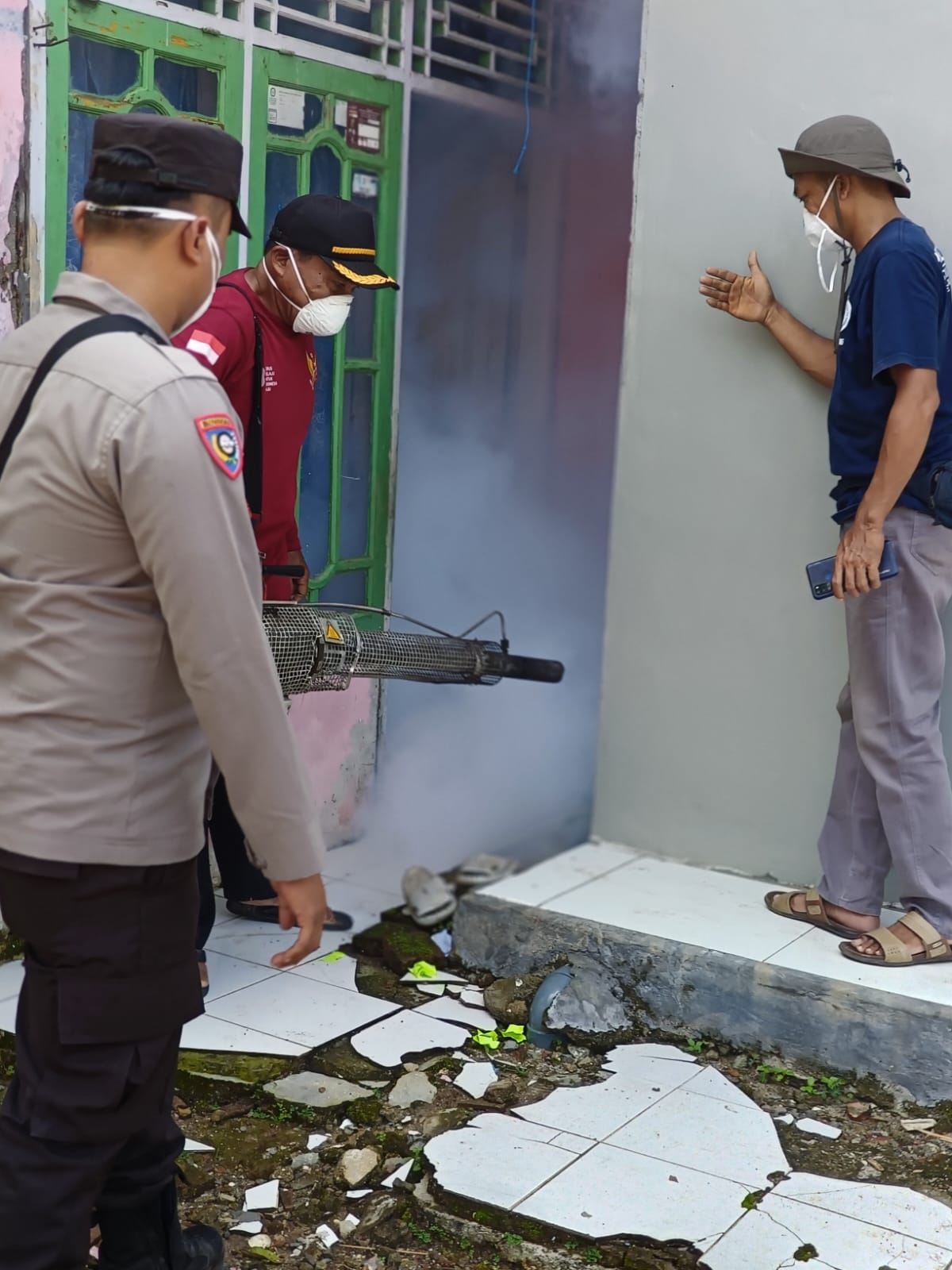 Pandeglang – Bhabinkamtibmas Polsek Panimbang Polres Pandeglang Bripka Samhudi dan tim kesehatan puskesmas Sobang dan apatur desa Sobang melaksanakan pengemrotan nyamuk malaria rumah penduduk Kp Apolo desa Sobang bersama tim kesehatan dan aparatur desa Sobang antisipasi penyakit malaria di lingkungan penduduk . Upaya pencegahan penyebaran nyamuk malaria Pandeglang, Rabu (10/07/24).
