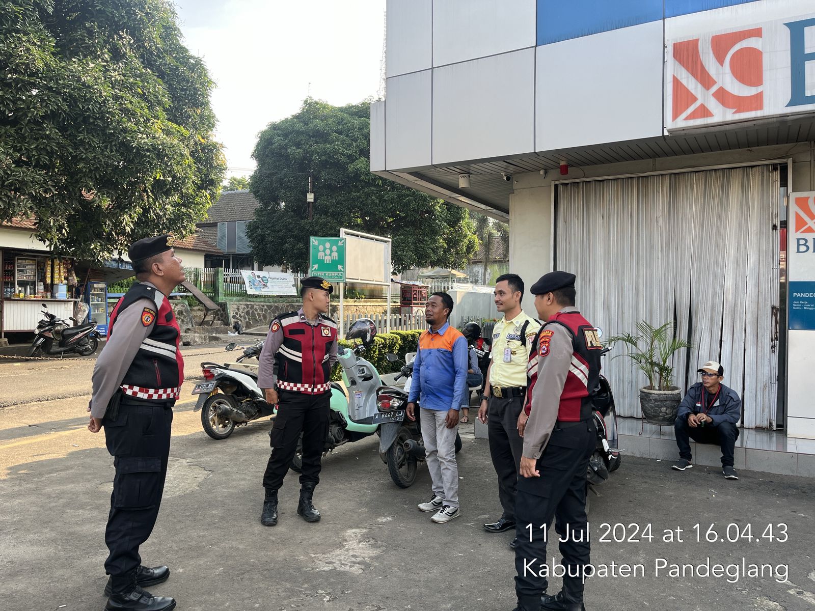Pandeglang, Kamis (11/7/2024) – Dalam rangka menjaga keamanan dan ketertiban masyarakat, Sat Samapta Polres Pandeglang melaksanakan patroli siang hari dengan menyambangi salah satu bank di wilayah hukum Polres Pandeglang. Kegiatan ini bertujuan untuk memberikan himbauan kamtibmas kepada petugas keamanan (security) dan petugas parkir bank tersebut.