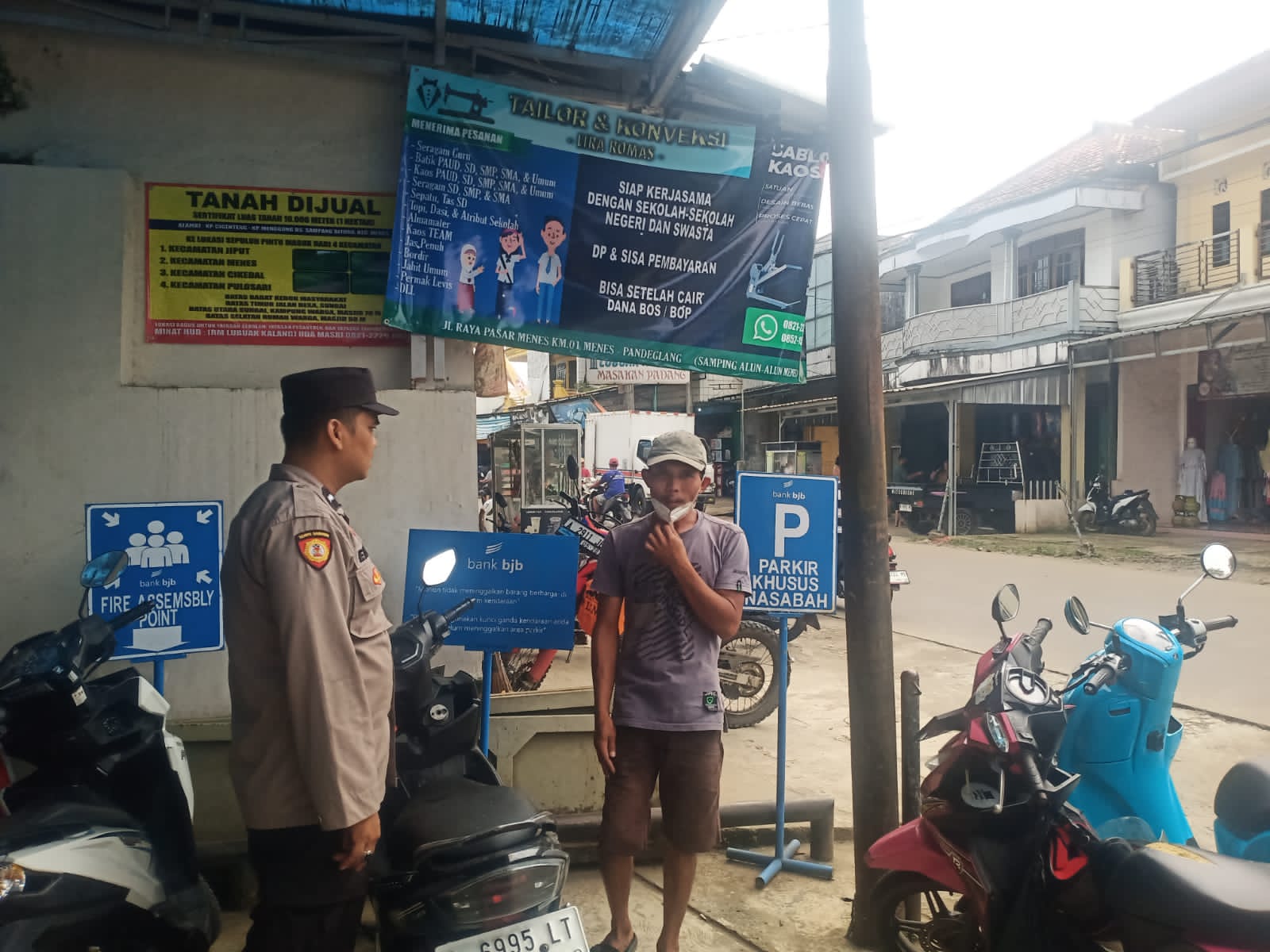 Pandeglang – Polsek Menes Polres Pandeglang melaksanakan kegiatan patroli dan himbauan kamtibmas kepada petugas parkir di Bank BJB pada hari Selasa 16 Juli 2024. Kegiatan ini dilaksanakan oleh Aipda Eri selaku ka spkt Polsek Menes.