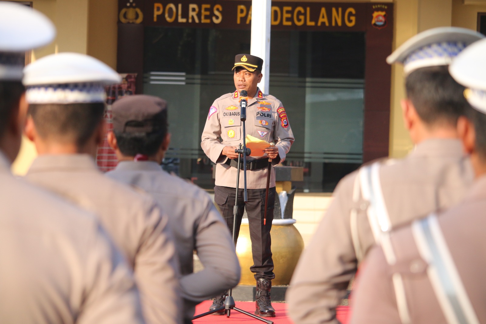 Kapolres Pandeglang, AKBP Oki Bagus Setiaji, memimpin upacara yang berlangsung khidmat dan penuh semangat di halaman Mapolres Pandeglang. Dalam amanatnya, Kapolres menyampaikan pentingnya menjaga integritas, profesionalisme, dan pelayanan prima kepada masyarakat.