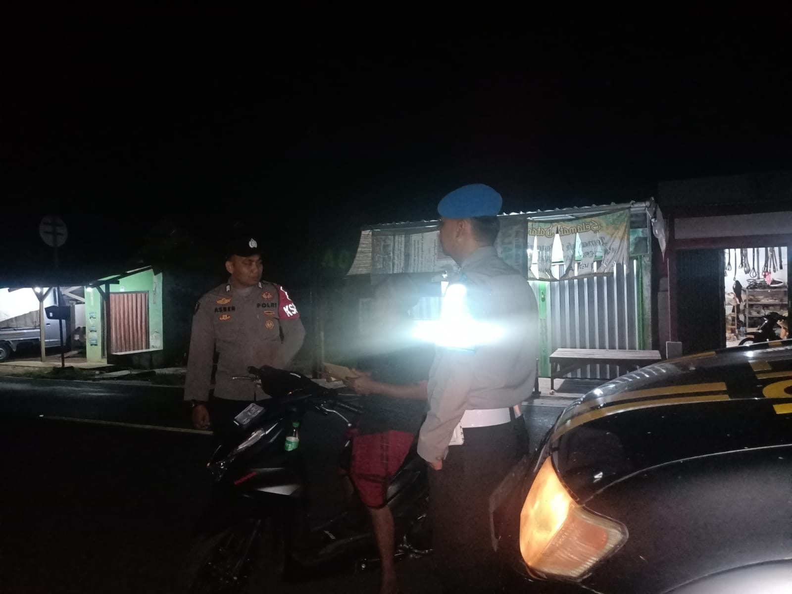 Bripka Asep dan Briptu Abnu menyambangi beberapa tempat keramaian, seperti warung kopi, minimarket, dan pos ronda. Mereka berdialog dengan warga yang ditemui, menanyakan tentang situasi kamtibmas di lingkungan mereka, dan memberikan imbauan agar selalu waspada terhadap aksi kriminalitas.