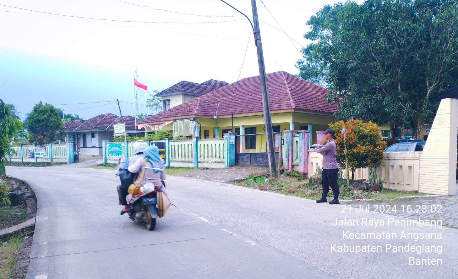 Pandeglang, 21 Juli 2024 – Anggota Piket Polsek Angsana Polres Pandeglang Brigadir Jumhani, melaksanakan kegiatan strongpoint sore di Jl Raya Munjul-Angsana hari ini. Kegiatan ini bertujuan untuk meningkatkan keamanan dan ketertiban lalu lintas di jalur utama tersebut, khususnya selama jam-jam sibuk di sore hari. Anggota piket dikerahkan untuk mengatur arus lalu lintas dan memberikan rasa aman kepada para pengguna jalan.