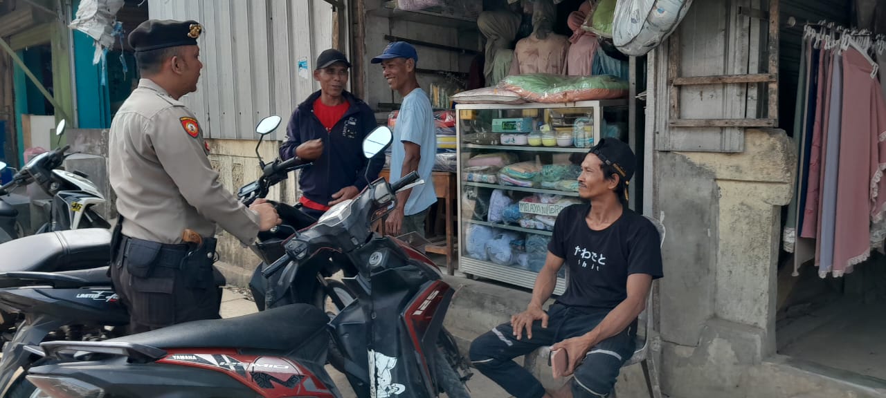 Picung – Kanit samapta Polsek Picung Polres Pandeglang dipimpin oleh Bripka Akhmad Setiawan melaksanakan patroli sambang dialogis di Pasar Picung, pada hari Minggu (28/07/2024).