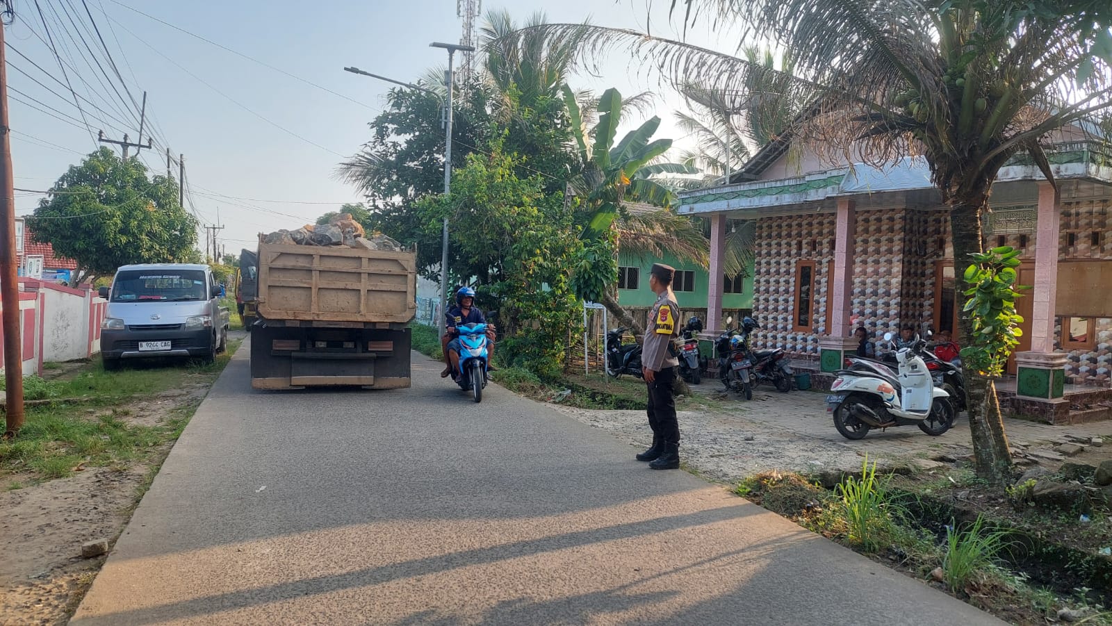 Pandeglang, Banten – Personil Polsek Patia Polres Pandeglang Brigpol Aril melaksanakan kegiatan rutin di pagi hari yaitu Pelayanan Pengaturan lalulintas antisipasi giat masyarakat dalam rangka menjamin arus lalu lintas yang lancar dan kondusif, serta kamtibmas yang aman untuk masyarakat beraktifitas disore hari, Senin (29/7/2024).