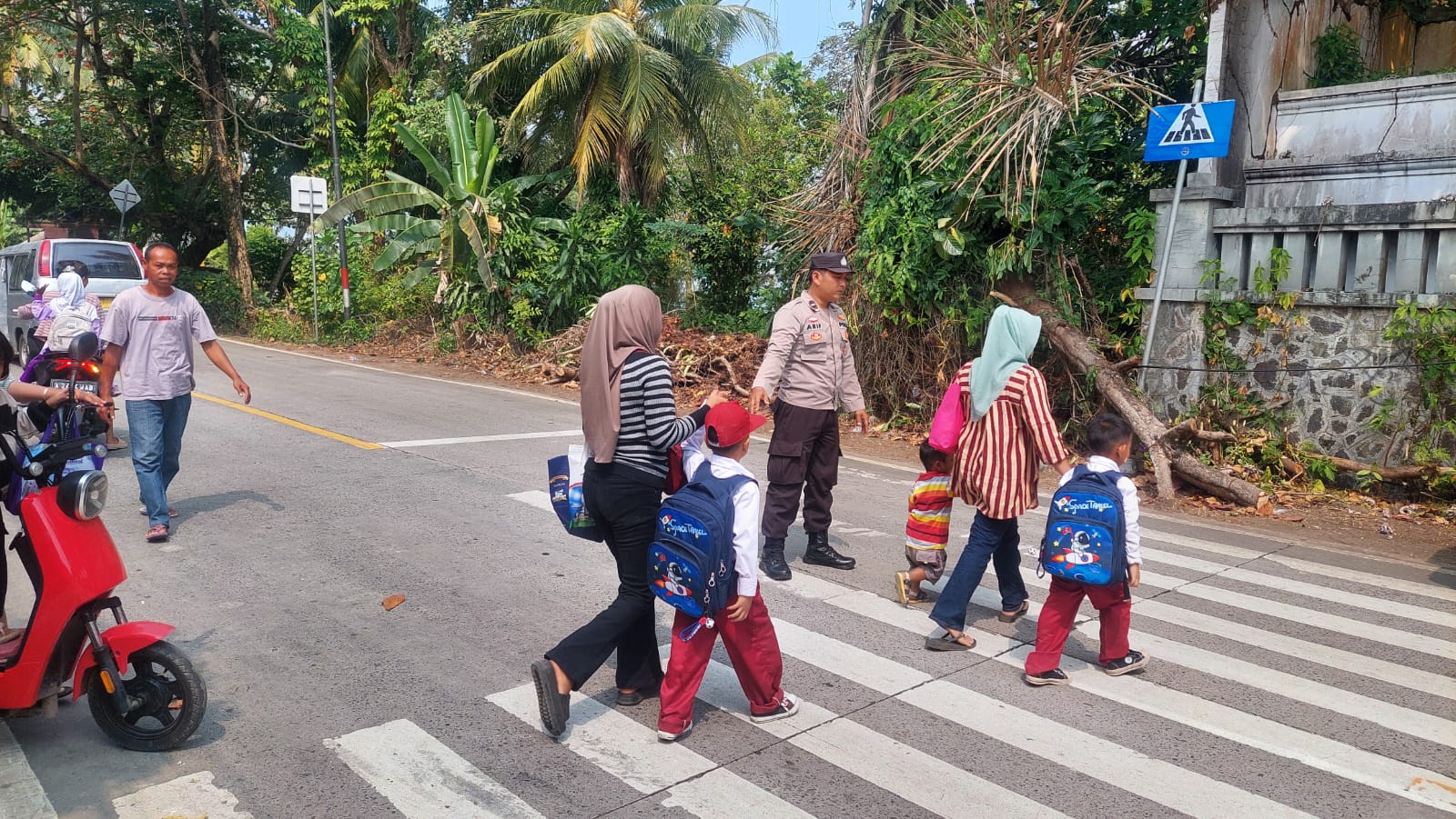 Aipda Arif ditempatkan di titik-titik strategis di sepanjang Jalan Raya Carita, khususnya di sekitar area sekolah, untuk mengatur lalu lintas dan mencegah kemacetan yang sering terjadi saat jam pulang sekolah. Kegiatan ini bertujuan untuk memastikan keselamatan siswa dan masyarakat serta mengurangi potensi kecelakaan lalu lintas di wilayah tersebut.