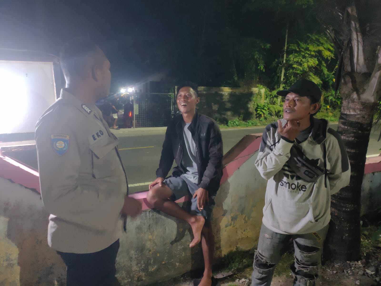 Polsek Carita Laksanakan Patroli Malam dan Berikan Himbauan Kamtibmas