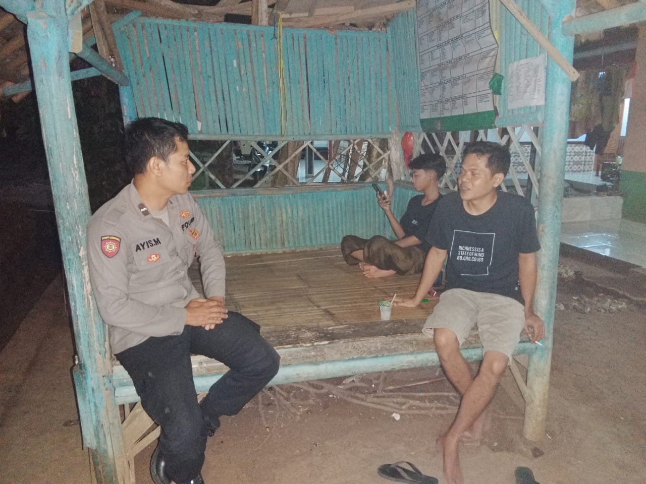 Aipda Ayis Mustofa dari Polsek Cadasari melakukan sambang ke warga yang sedang melaksanakan ronda malam di Kampung Sukamaju, Desa Cadasari.