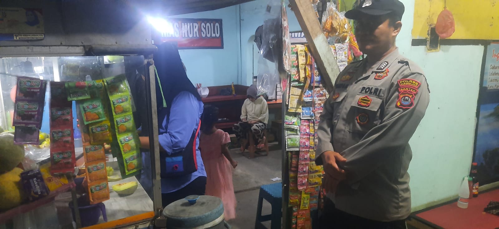 Selama patroli, petugas tidak hanya memantau situasi keamanan, tetapi juga berinteraksi langsung dengan para pedagang. Himbauan-himbauan terkait keamanan bersama disampaikan, serta mengajak masyarakat untuk bersama-sama menjaga ketertiban.