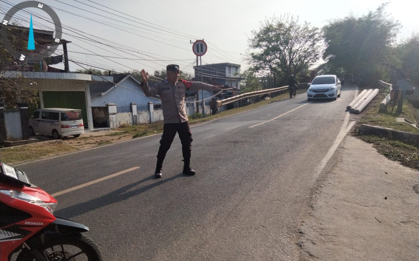 Di depan Kantor Polsek Cikeusik petugas tampak sigap mengatur arus kendaraan, memberikan isyarat kepada pengendara, dan memastikan tidak ada hambatan yang bisa mengganggu kelancaran lalu lintas.