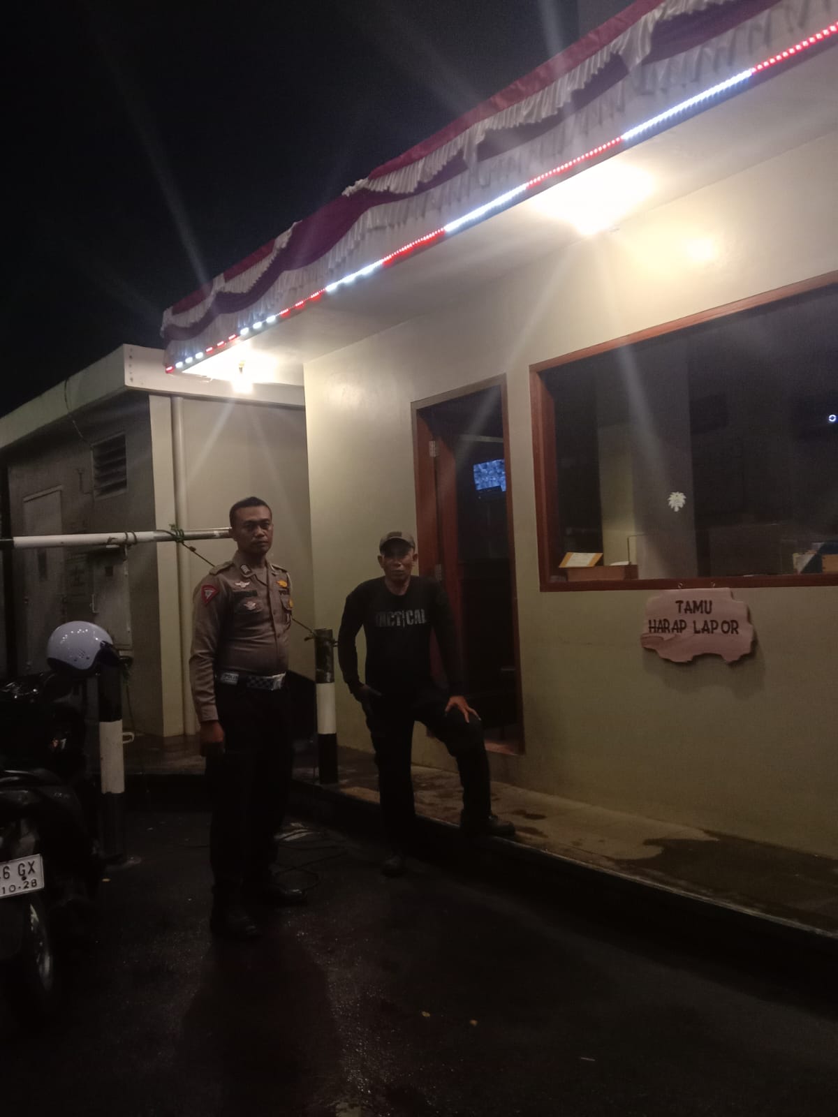 Polsek Carita Laksanakan Patroli Malam dan Himbauan kepada Security Hotel Mutiara