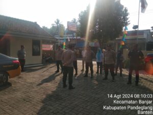 Pandeglang, 14 Agustus 2024 – Kapolsek Banjar, AKP H. Dadan, memimpin apel pagi yang dilaksanakan pada hari Rabu, 14 Agustus 2024, pukul 08.00 WIB. Apel tersebut diadakan di halaman Polsek Banjar, dengan dihadiri oleh seluruh anggota Polsek dan staf terkait.