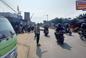 Bripka Arifudin Laksanakan Pengaturan Jalan di Wilayah Hukum Polsek Cikedal, Polres Pandeglang
